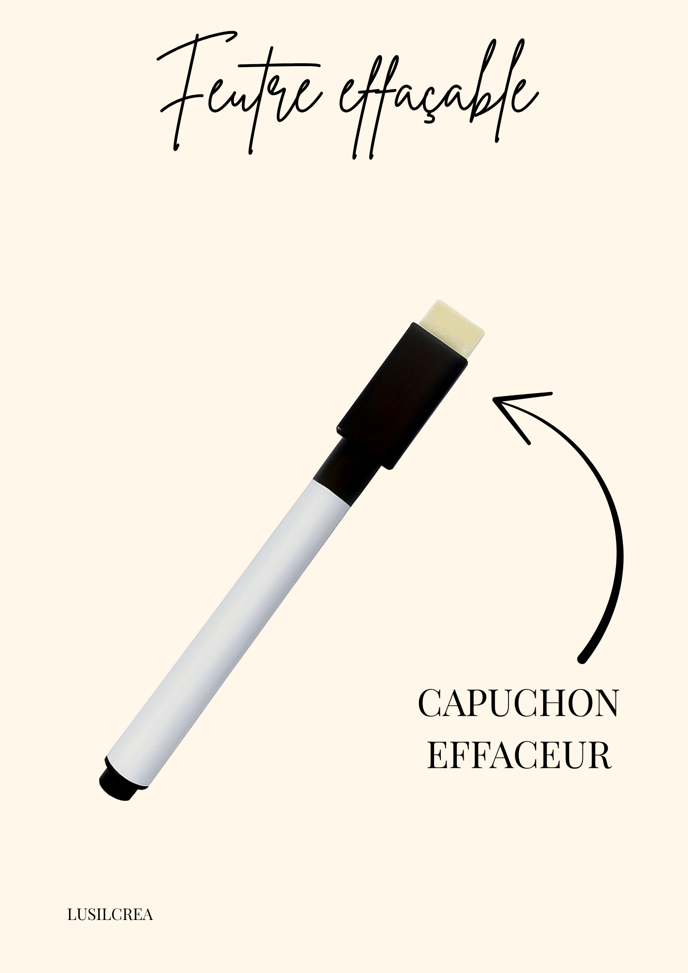 Feutre effaçable noir – Capuchon avec effaceur intégré