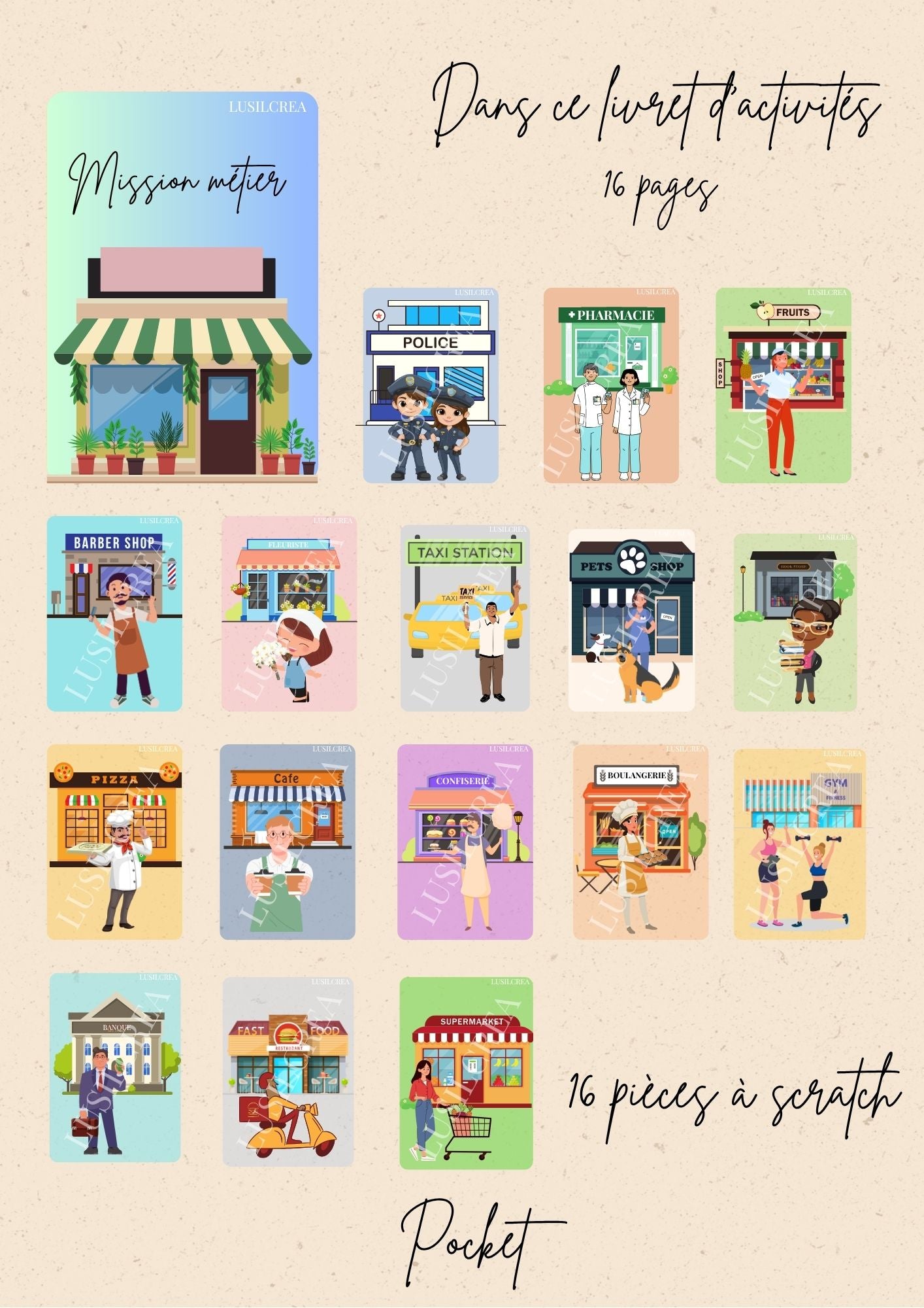 L’enfant doit associer les personnages au bon endroit grâce à 16 éléments à scratcher.