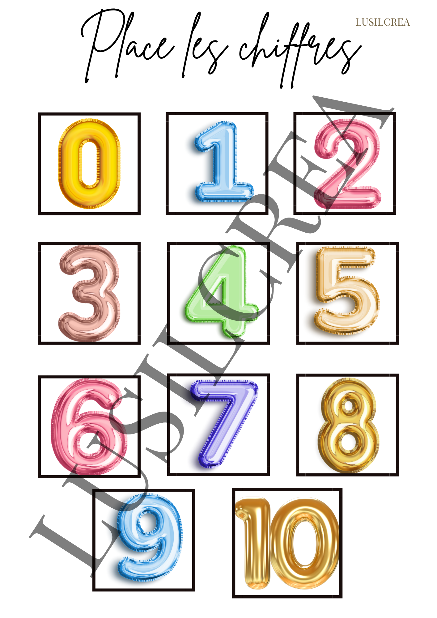 Une page ludique et visuelle pour apprendre à reconnaître les chiffres de 1 à 10et les positionner dans le bon ordre.