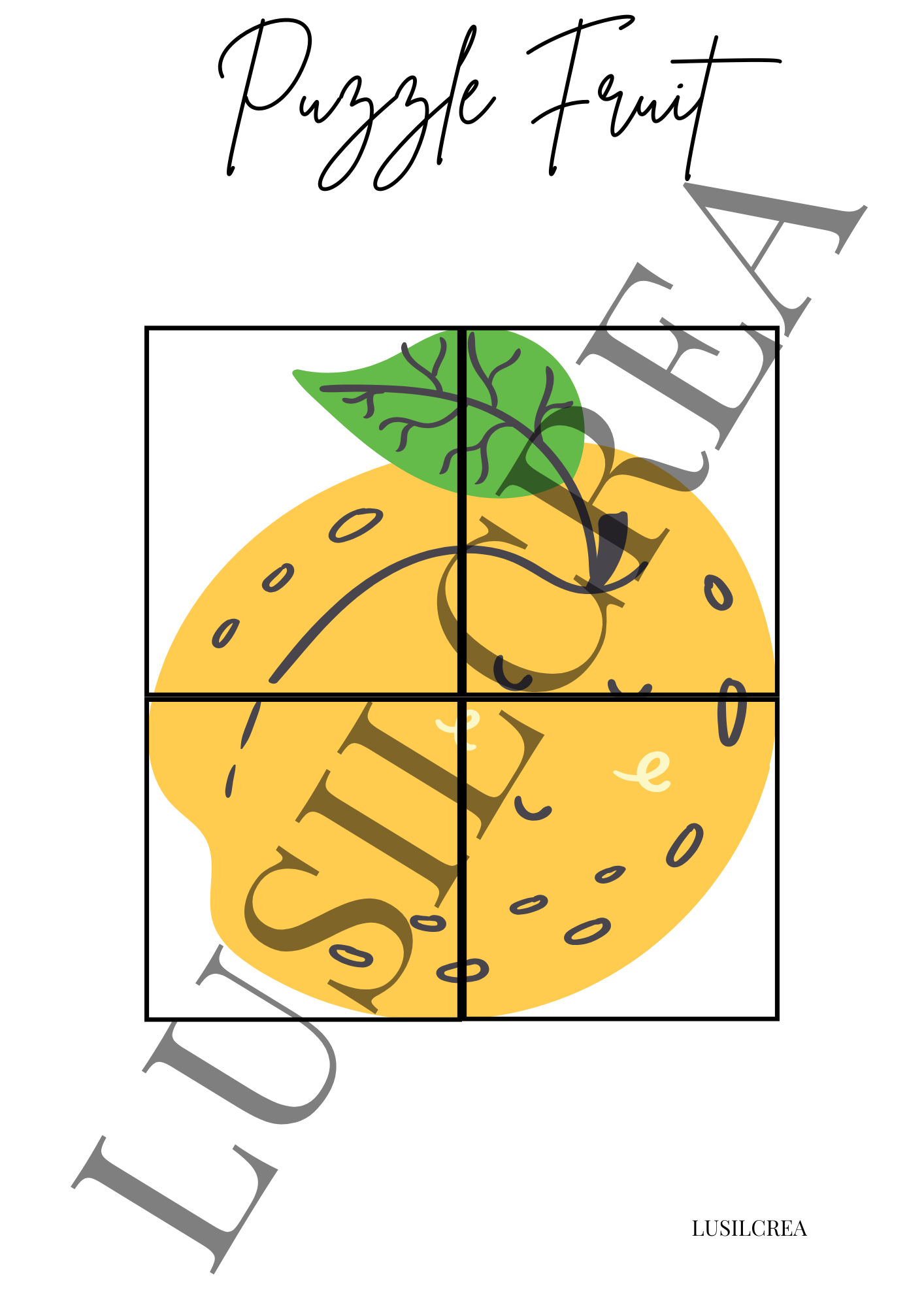 Elle contient 4 pièces à scratcher, à replacer au bon endroit pour reformer l’image complète du fruit.